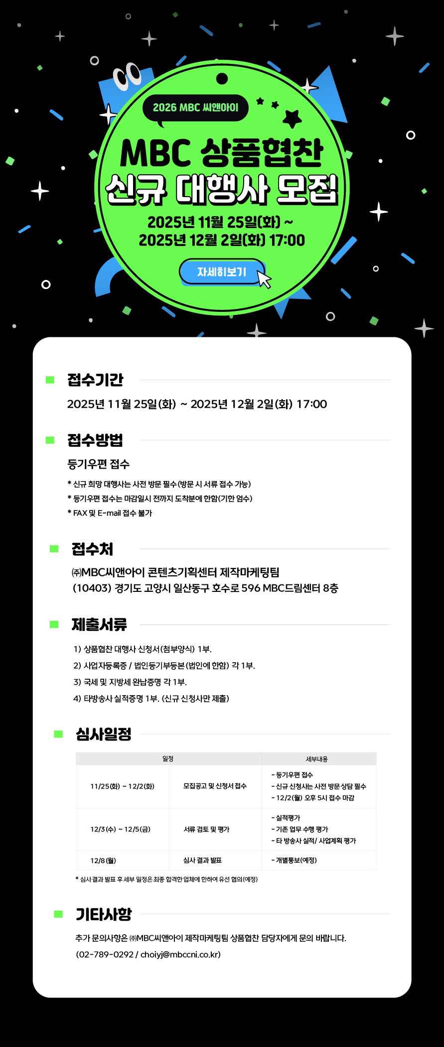 2026년도 MBC 상품협찬 신규 대행사 모집