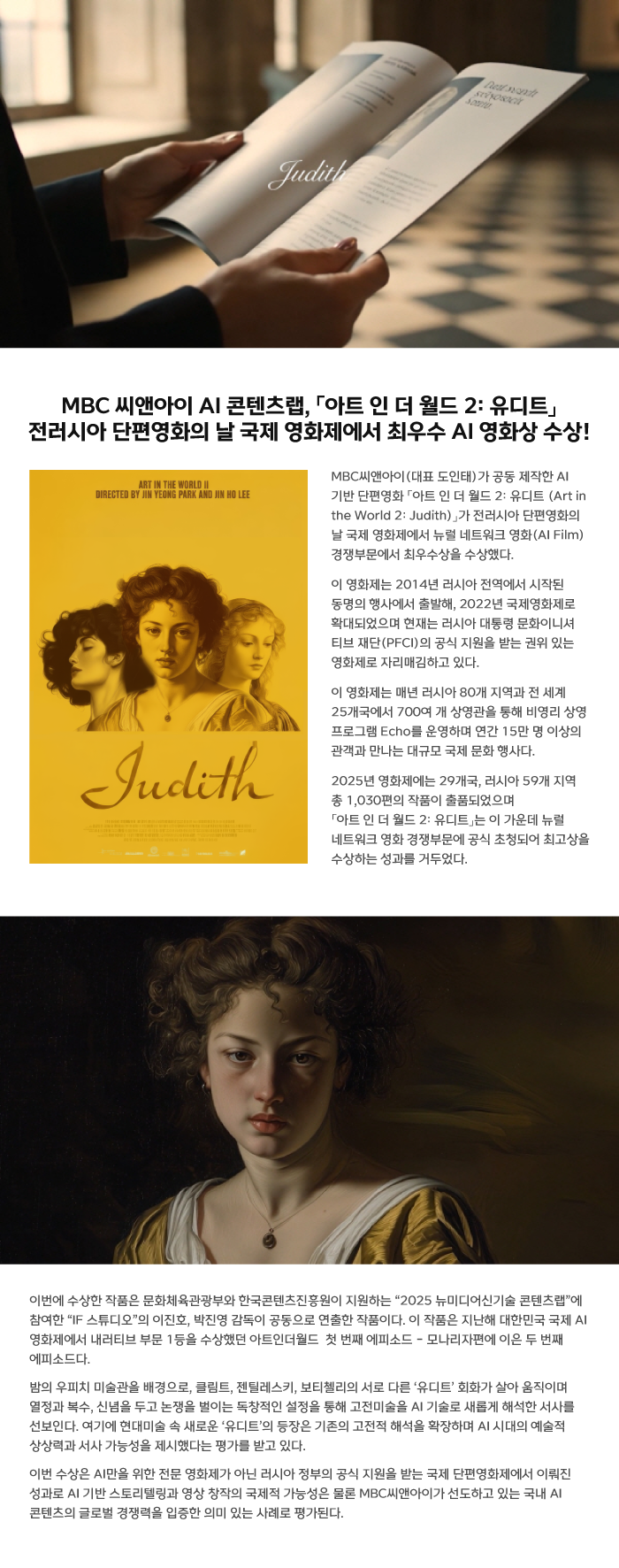MBC씨앤아이 AI 콘텐츠랩 국제 영화제 최우수 AI 영화상 수상