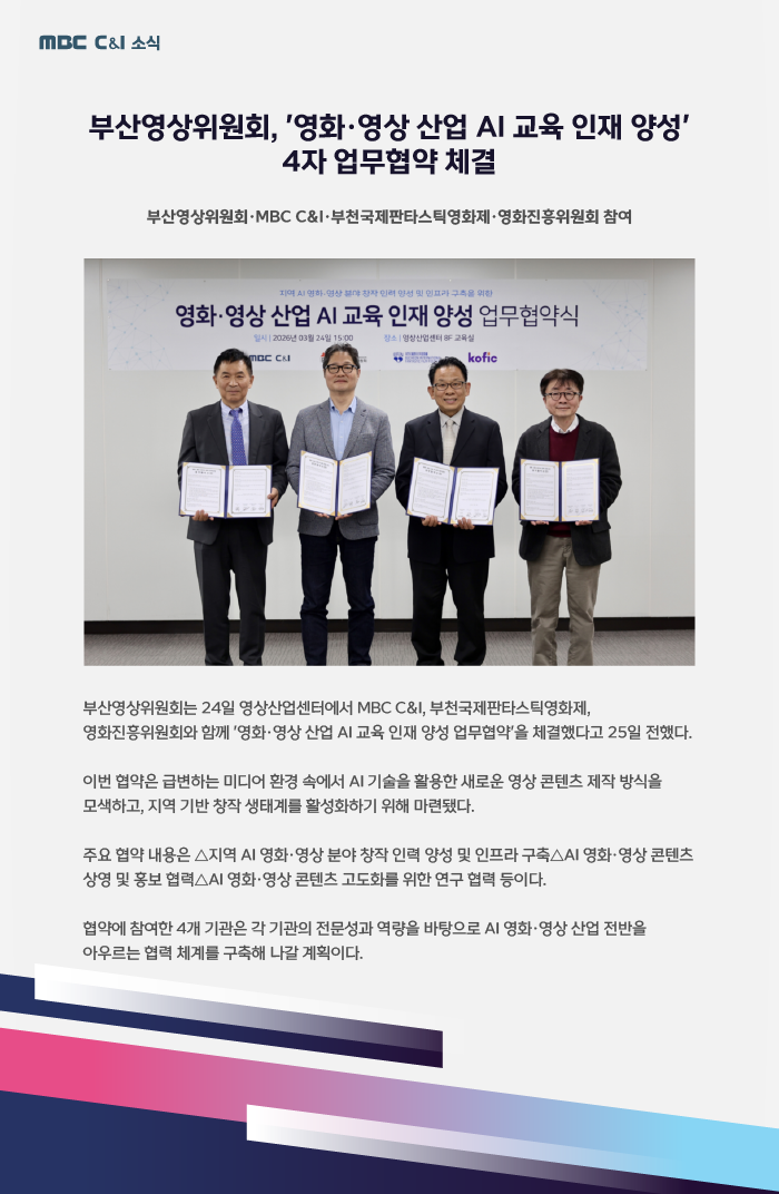 [보도자료] 영화, 영상 산업 AI 교육 인재 양성 업무협약 체결