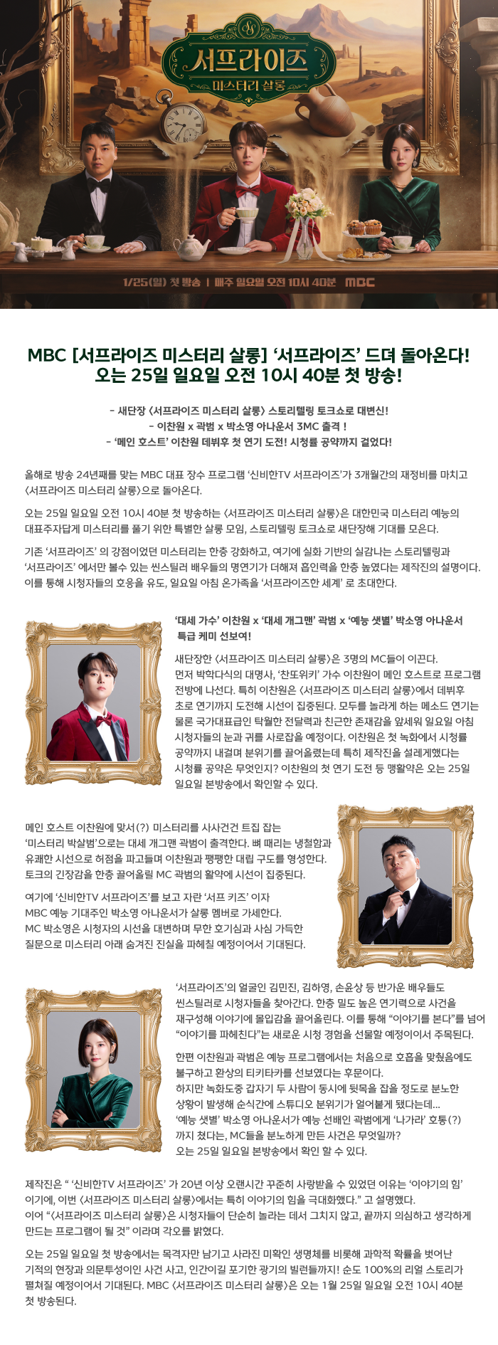 MBC 서프라이즈 미스터리살롱 드뎌 돌아온다! 25일 첫 방송